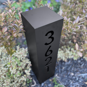 This eye-catching address column is the perfect finishing touch for your home's exterior. The sturdy, weather-resistant design stakes securely into your landscaping, creating a polished, custom look that complements any outdoor style. Personalize it with your choice of finish and font to match your home's aesthetic. Included solar light kit allows your address will be visible day or night, guiding guests and deliveries straight to your door.